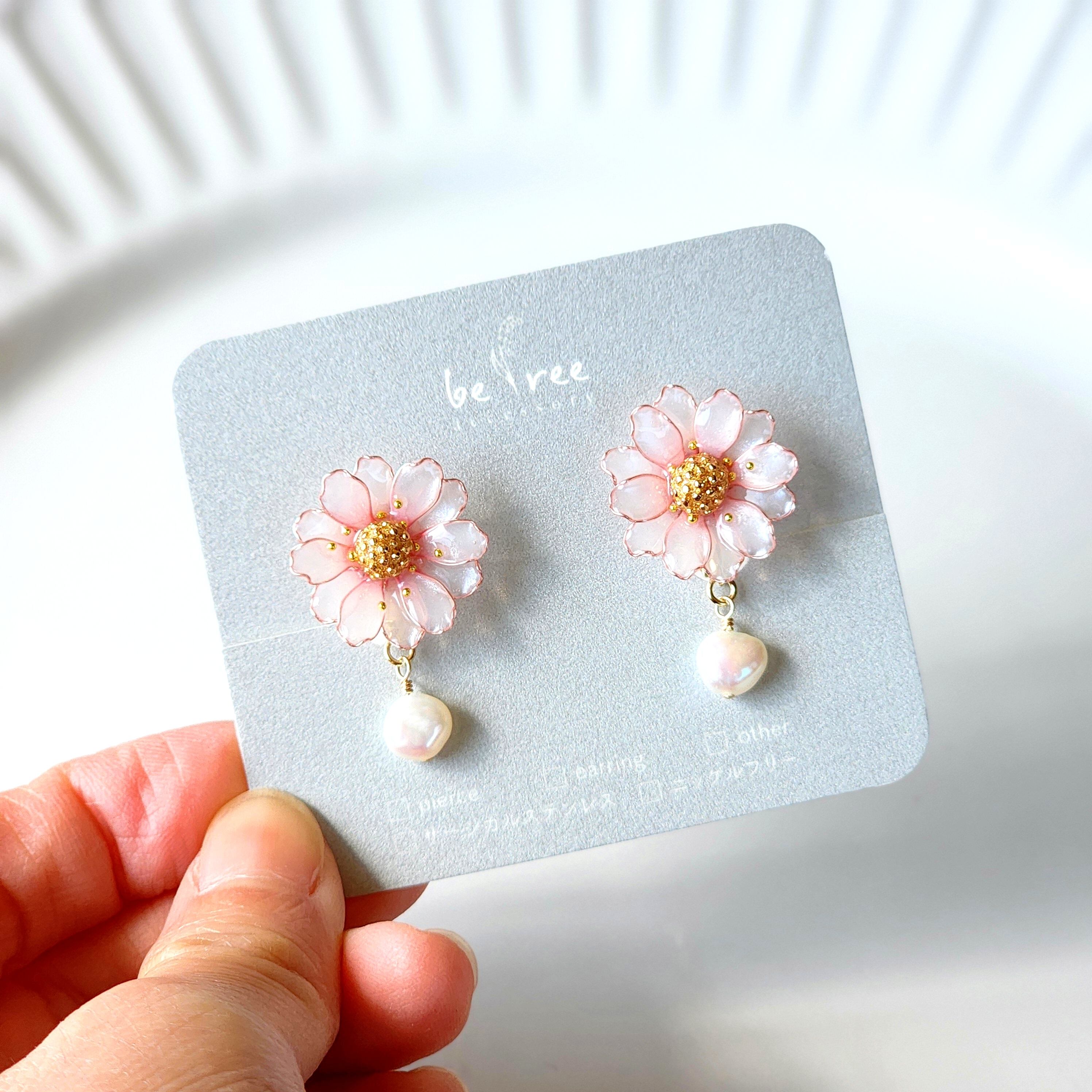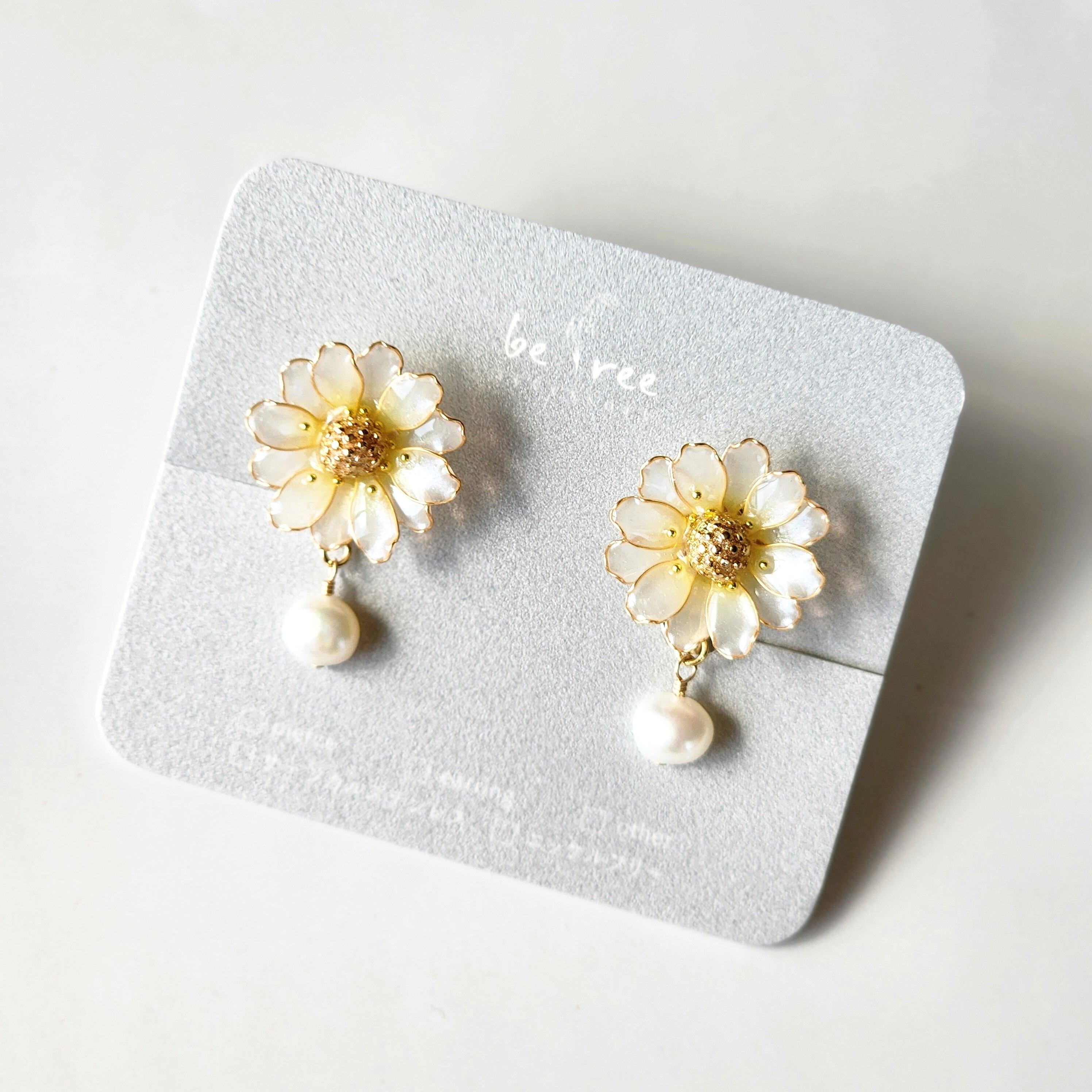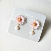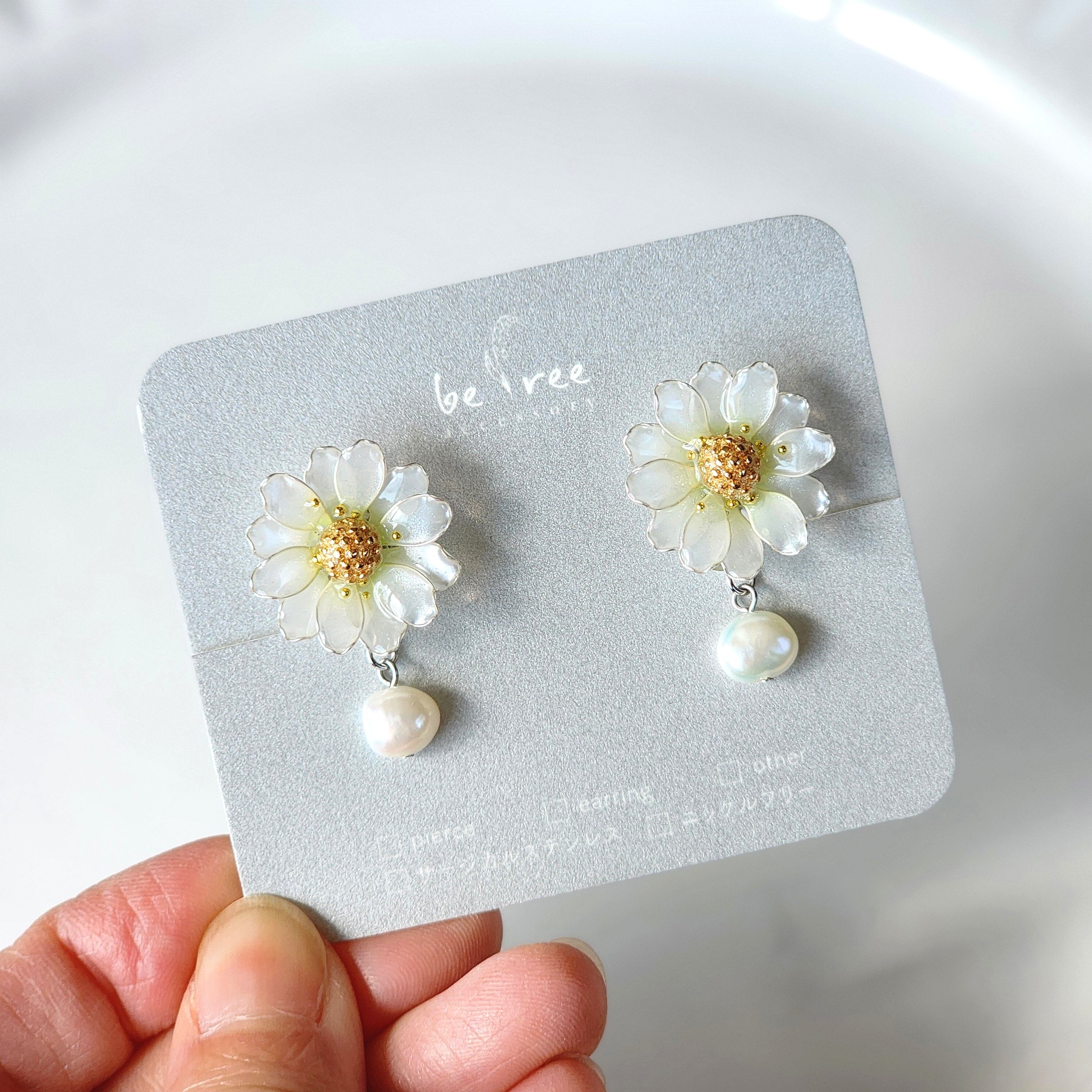 淡く色付く可憐なマーガレットの耳飾りです*.°•