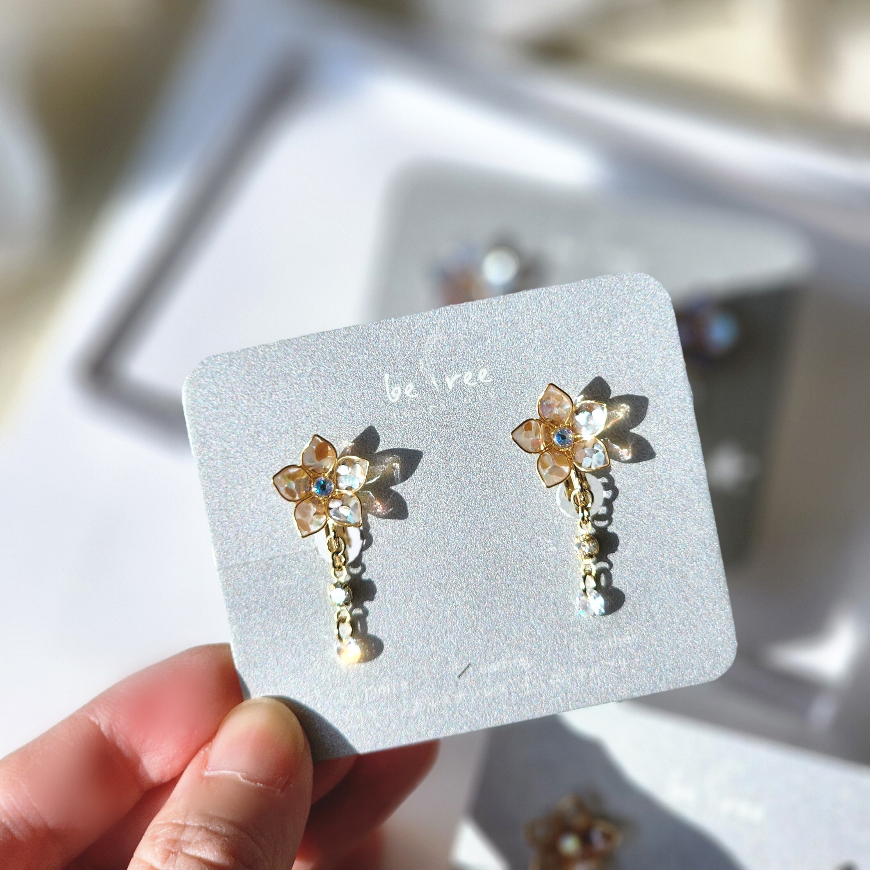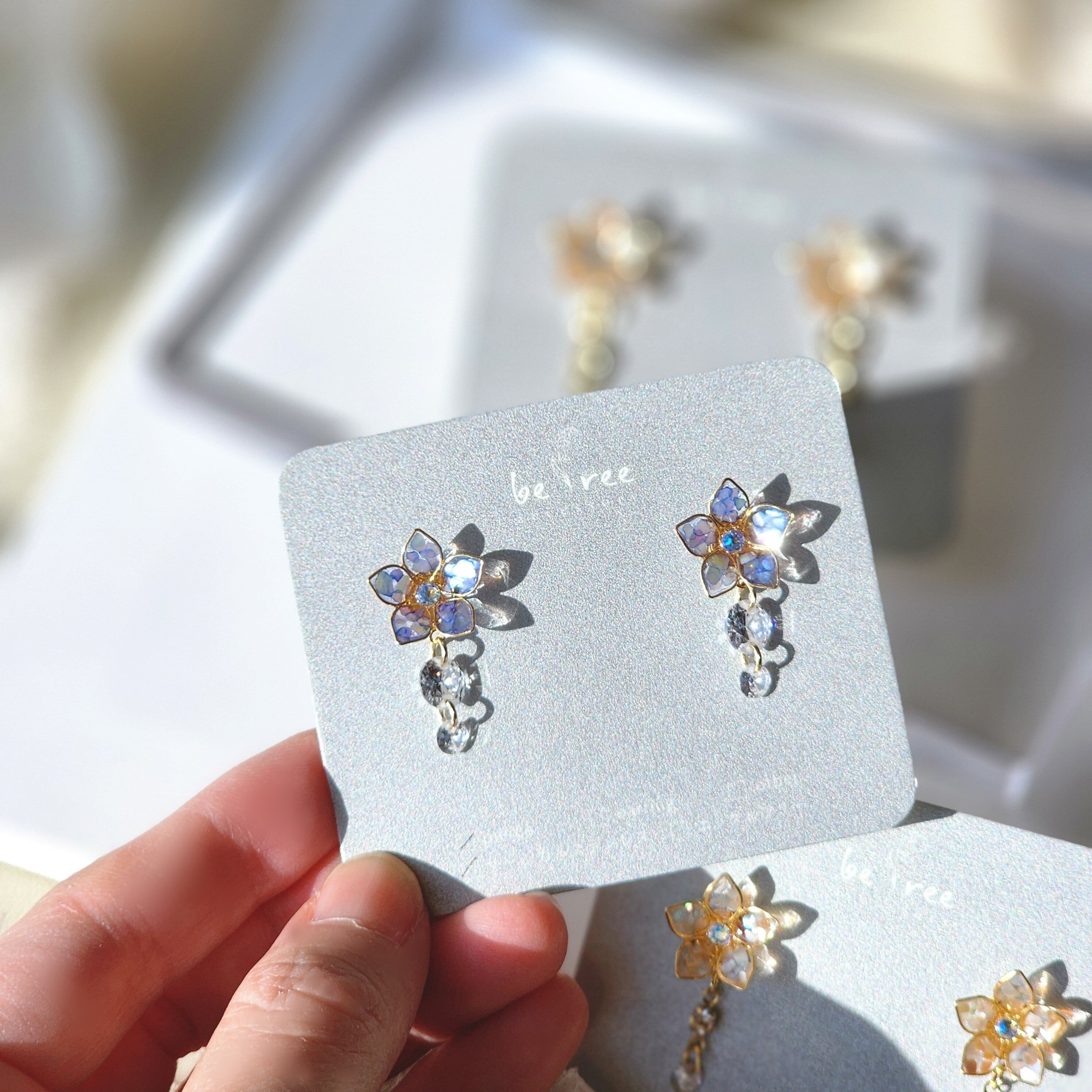 デザインの違ったクリスタルチャームが揺れます!