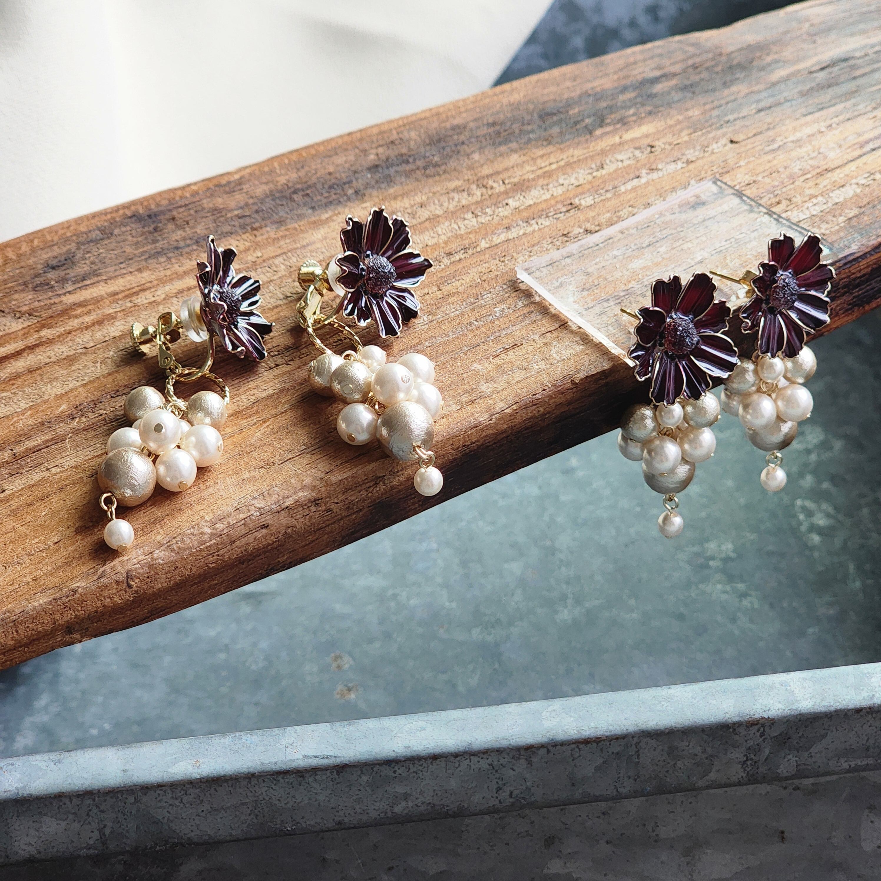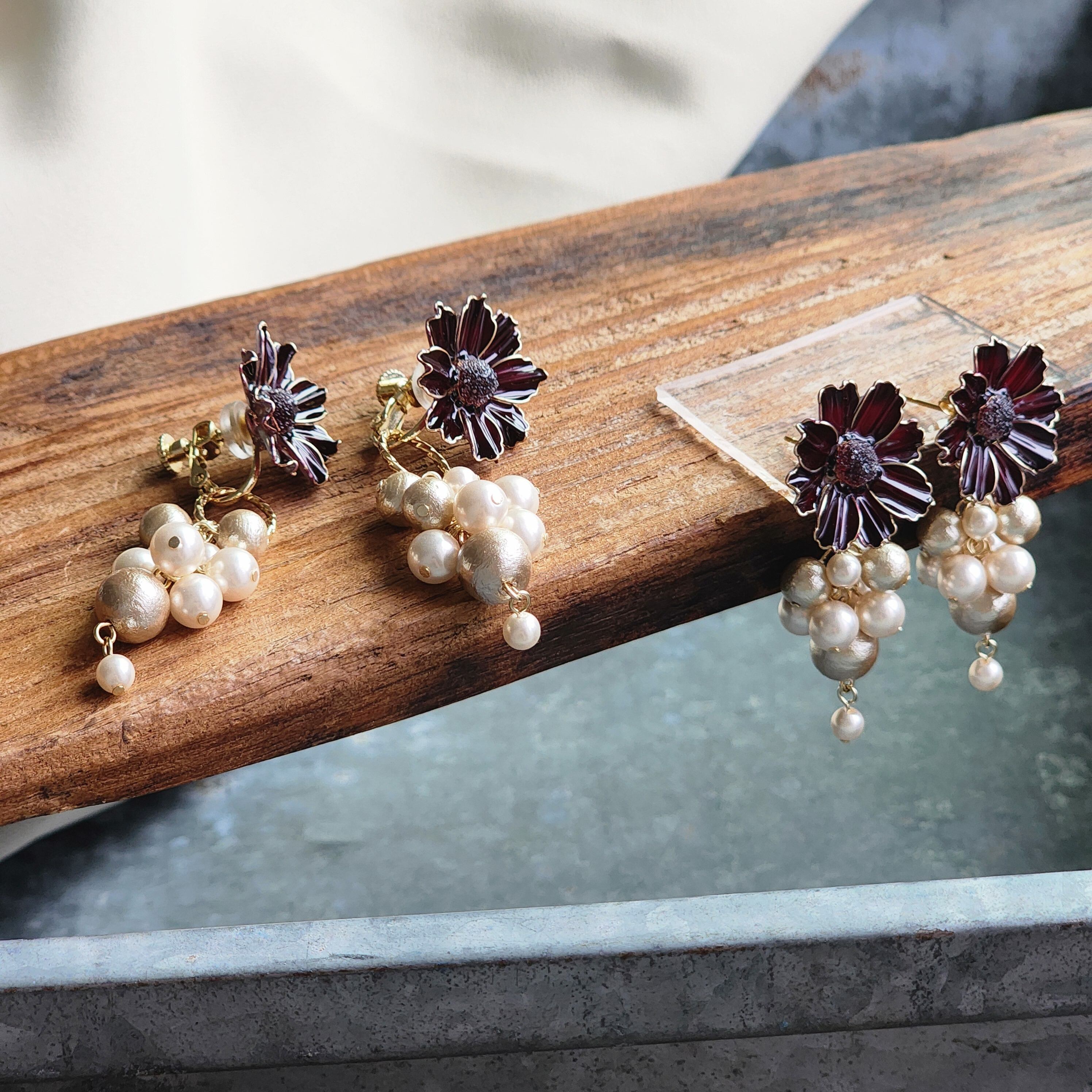 お花だけの一輪耳飾りとしても使っていただけますのでお得感がありますね!