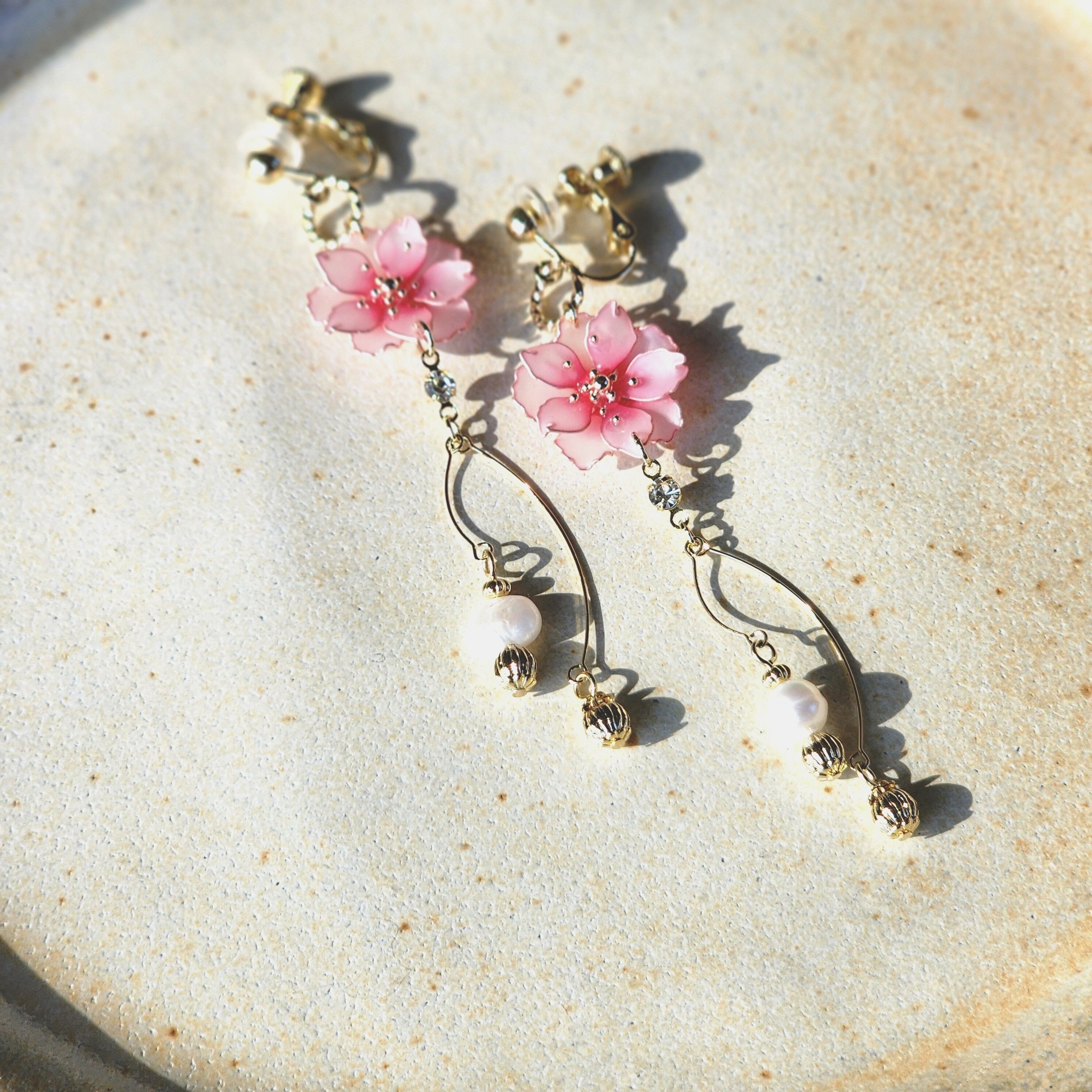 ぼんぼりみたいな和テイストのゴールドビーズを合わせました♡